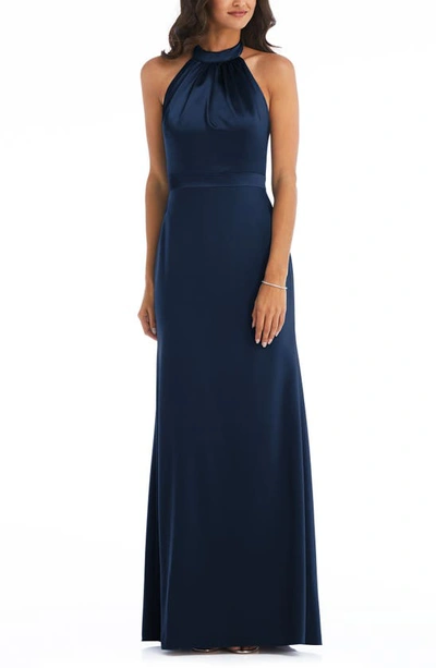 After Six Halter Neck Charmeuse Crepe Gown In Blue Modesens